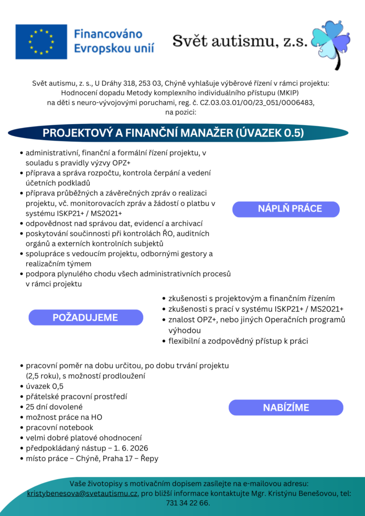 V případě zájmu o podrobnější informace je možné volat na tel.: 731 342 266, popř. psát na e-mail: kristybenesova@svetautismu.cz